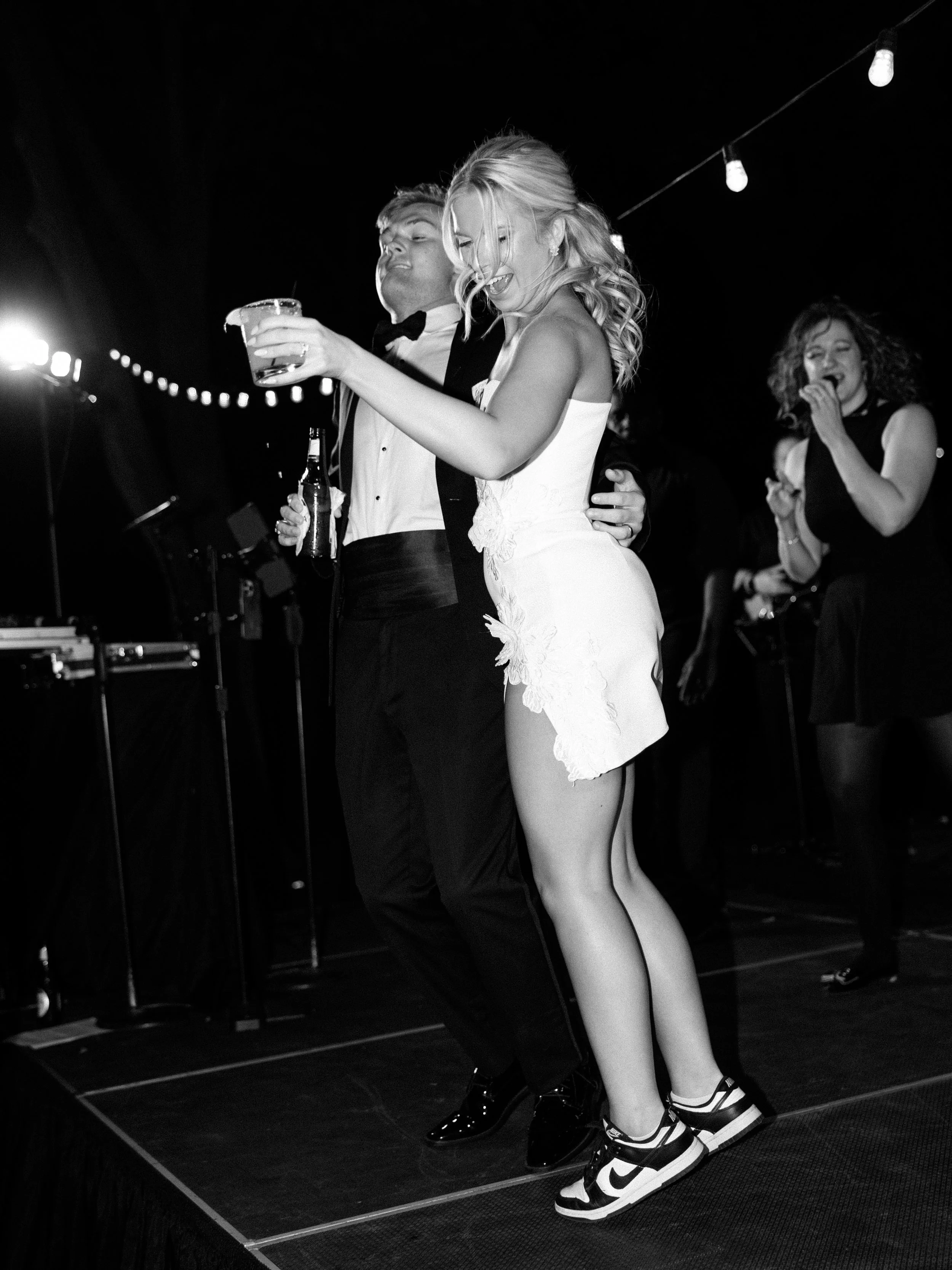 Guests were treated to a celebration that balanced elegance with energy. The timeless style of Jenna Murray Photography captured each quiet glance, each joyful tear, and every unscripted moment with a sense of artistry. Every image truly told a story. One that felt both deeply personal and universally romantic.As the sun set, the atmosphere shifted into something electric. Love and Happiness Band brought the house down with a vibrant, joyful set that had every guest on their feet! The dance floor was packed with the kind of fun that only comes from a room full of people who truly love the couple they’re celebrating.From Madi’s dress change (because yes, the party had to keep going) to their petal-filled grand exit into a vintage getaway car, every moment of their day was effortlessly iconic. It was timeless in best ways — heartfelt, beautiful, and unforgettable — the kind of celebration that leaves you smiling long after the last song fades.
